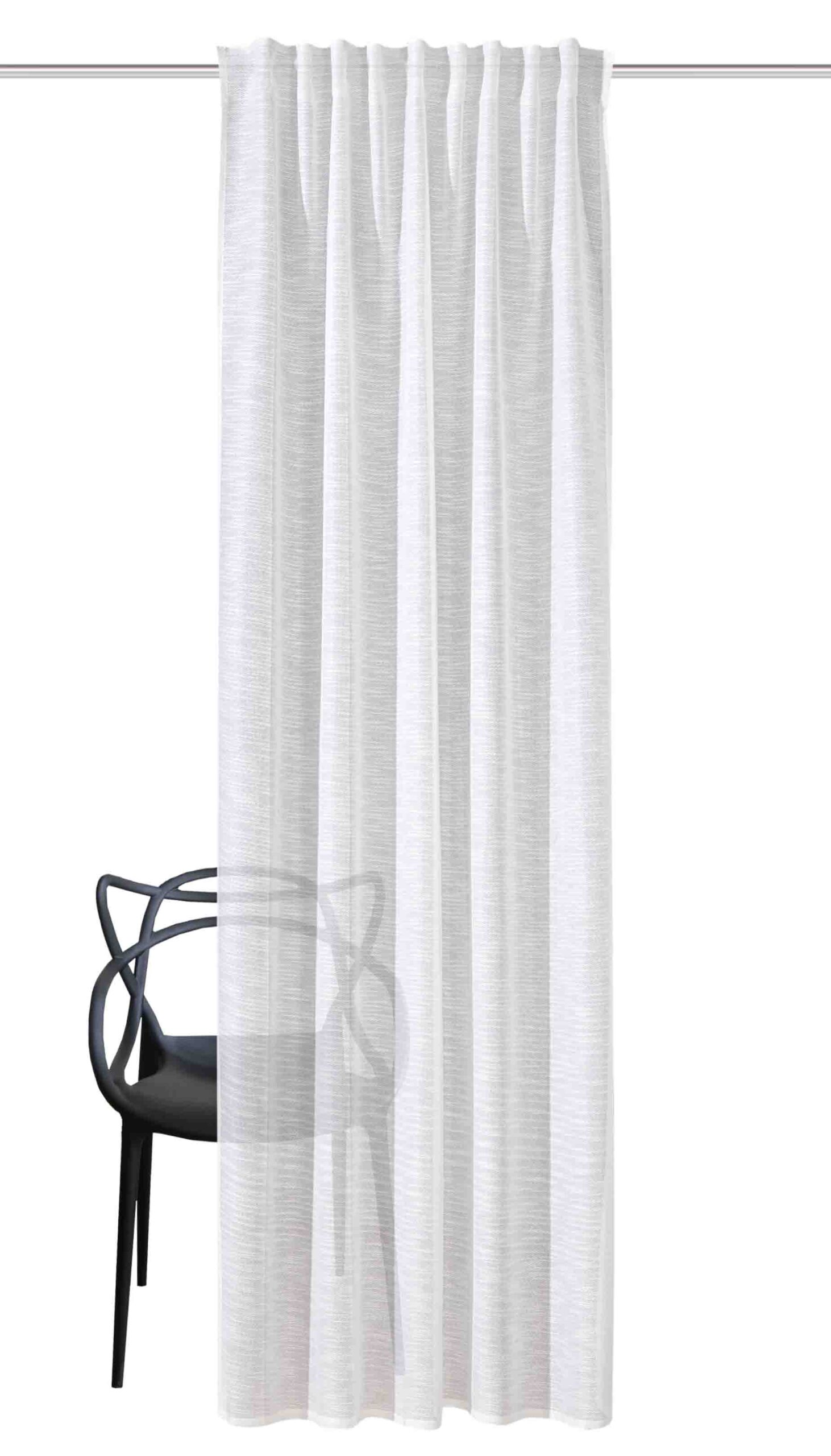 Der Fertigschal Elfi 85411 ist an den Seiten und unten sauber gesäumt. Am oberen Abschluss ist ein Multifunktionsband angebracht. Dadurch stehen Ihnen zwei Varianten zur Aufhängung zur Verfügung (dies bietet sich insbesondere an, wenn Sie vorhandene Gardinensysteme nutzen möchten oder gerne neu dekorieren):