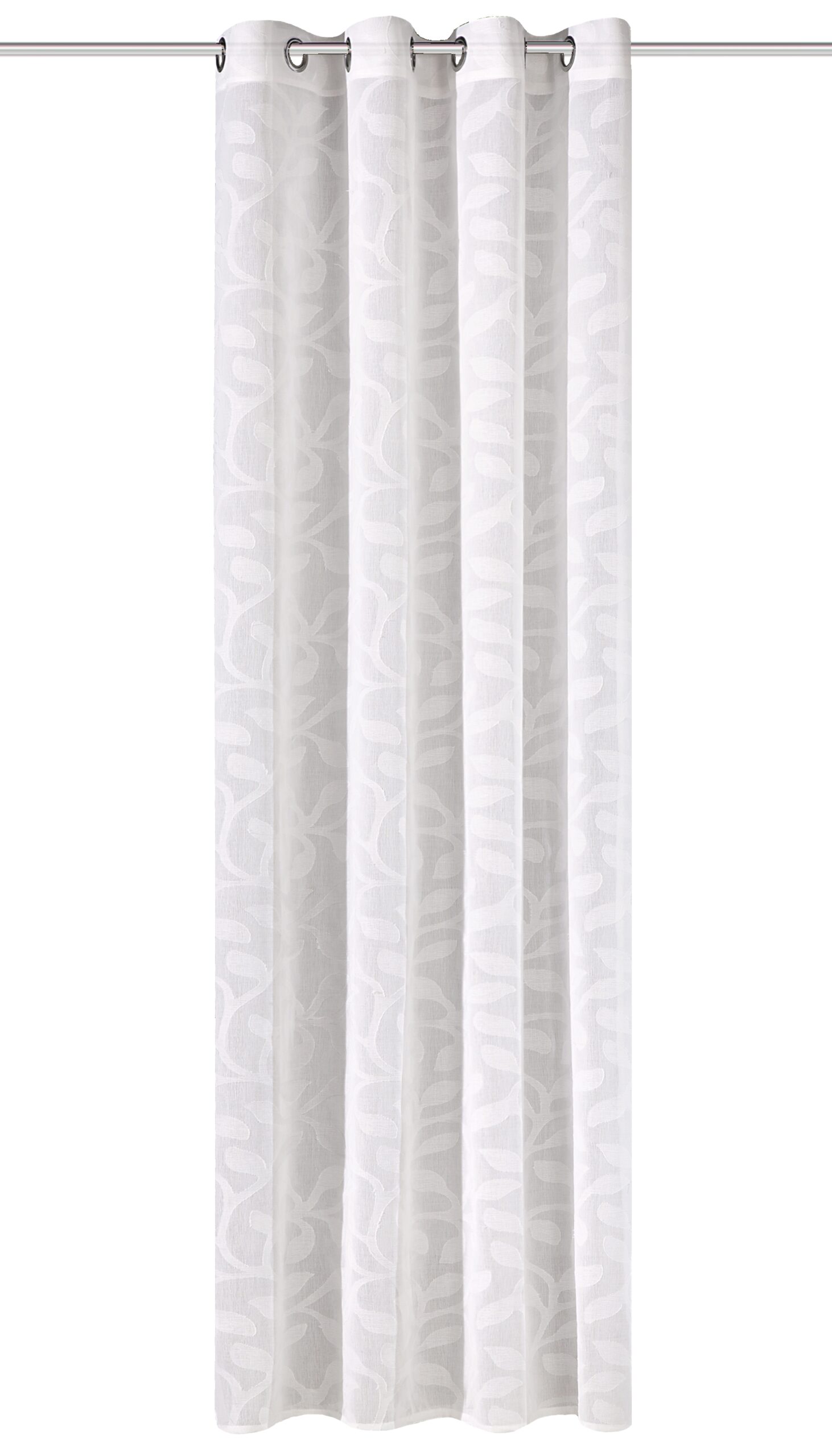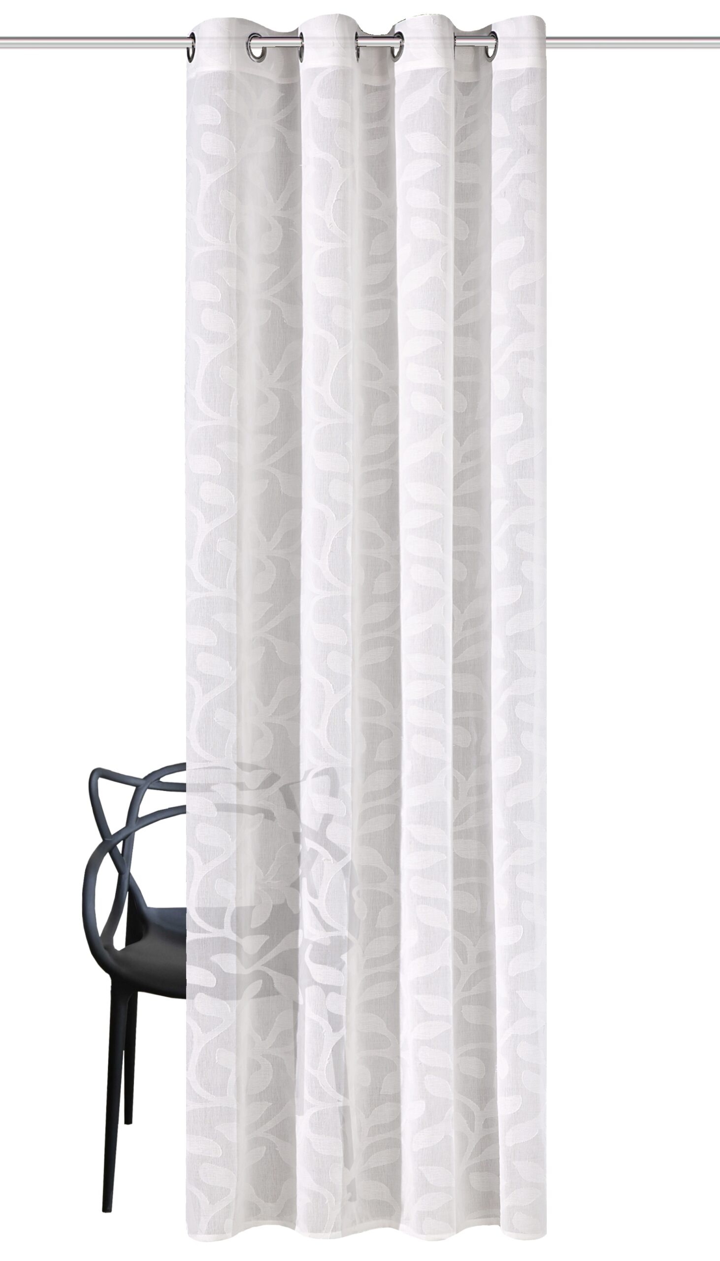 Der Schal Pixel 53802 ist eine Fertiggardine aus halbtransparentem Batist mit Leinenstruktur. Die hochwertige Scherlimusterung erstreckt sich über die gesamte Vorhangfläche und zeigt ein dekoratives Blätter-Ranken-Motiv. Dabei sorgen die Scherli-Fäden auf der Vorderseite für einen einzigartigen Look. Das halbtransparente Material sorgt für einen dezenten Sichtschutz und angenehme Lichtverhältnisse im Raum.