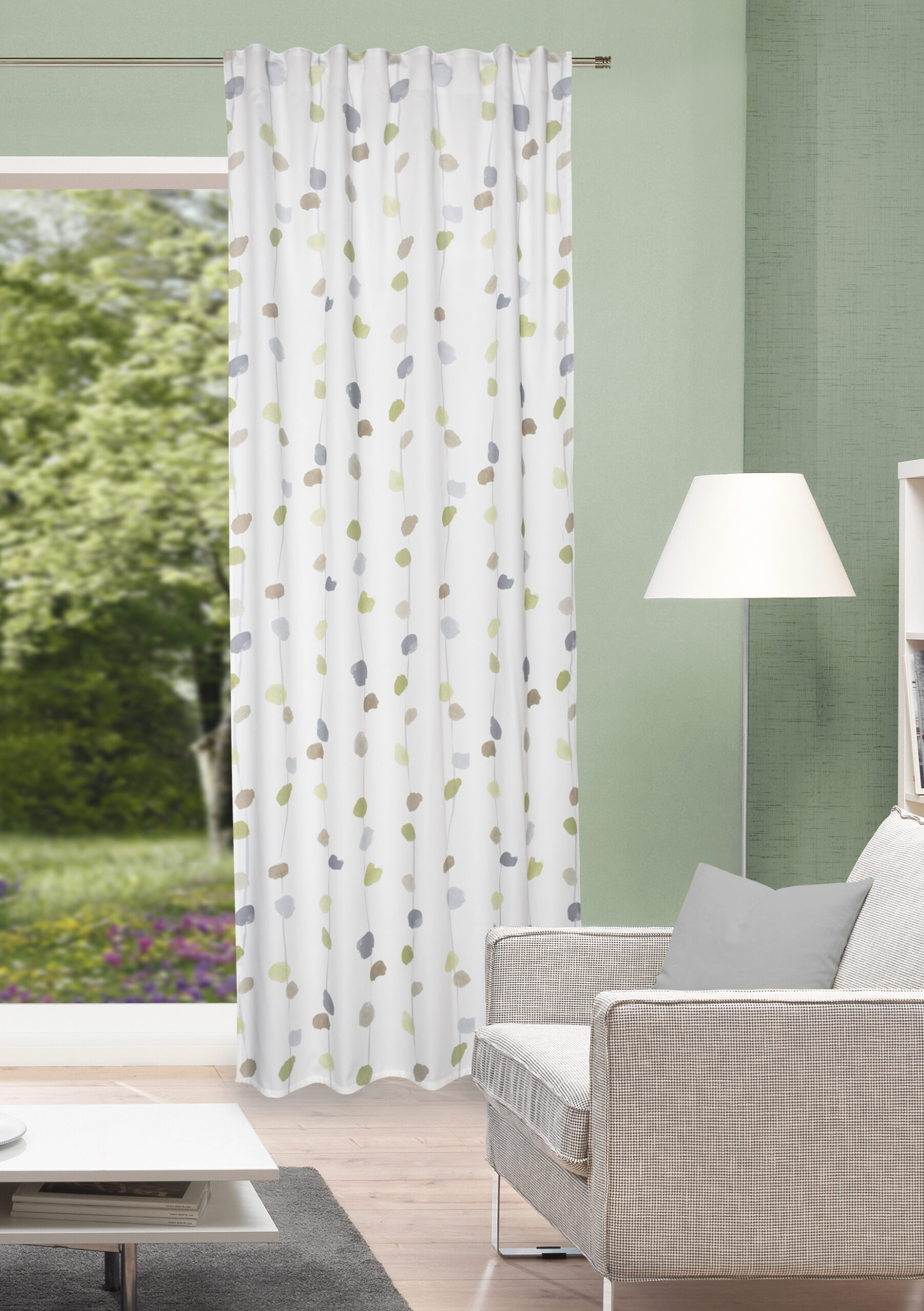 Schlaufenbandschal Effie 85540 – modische Fensterdeko aus bedrucktem Dekostoff