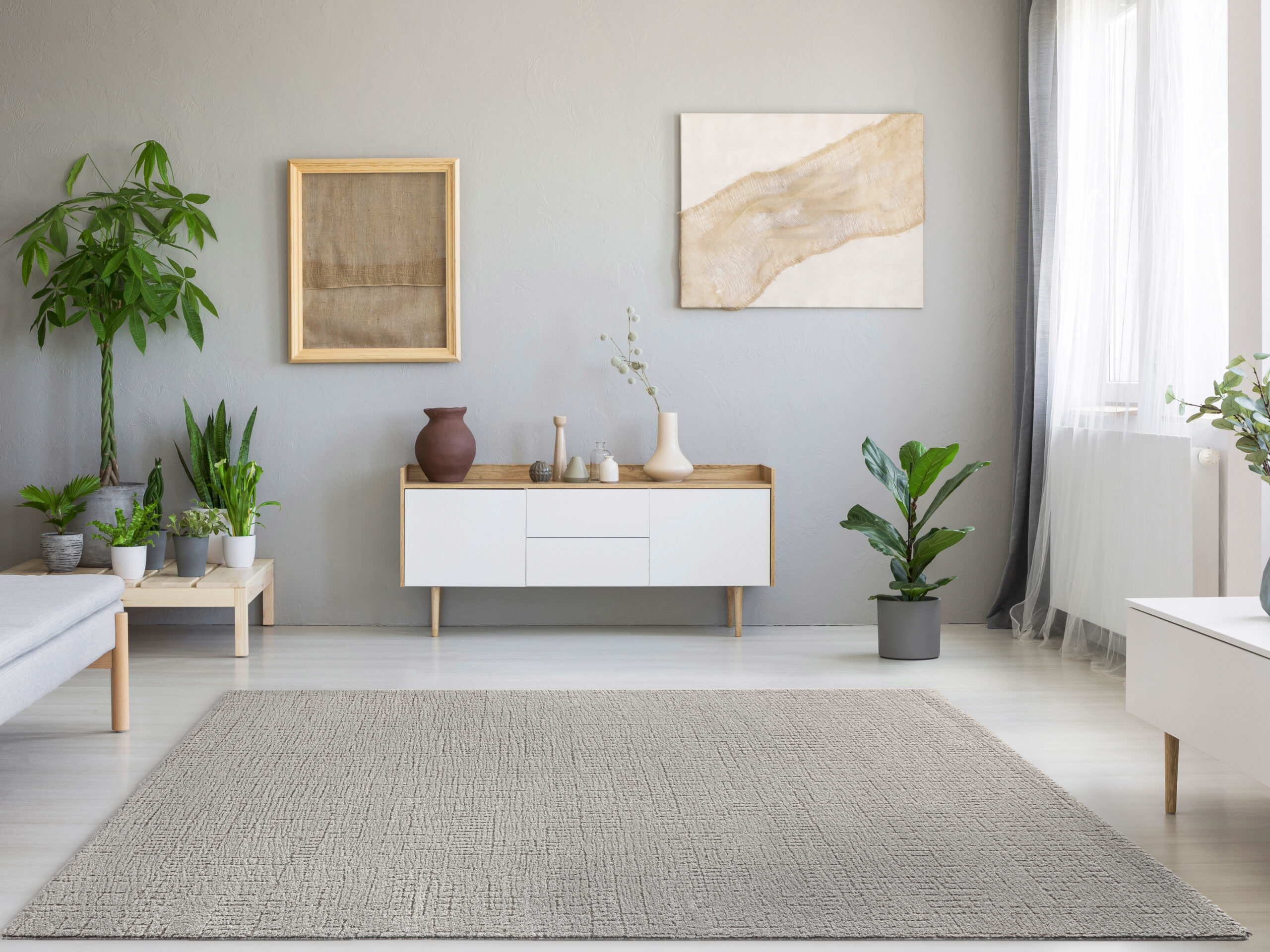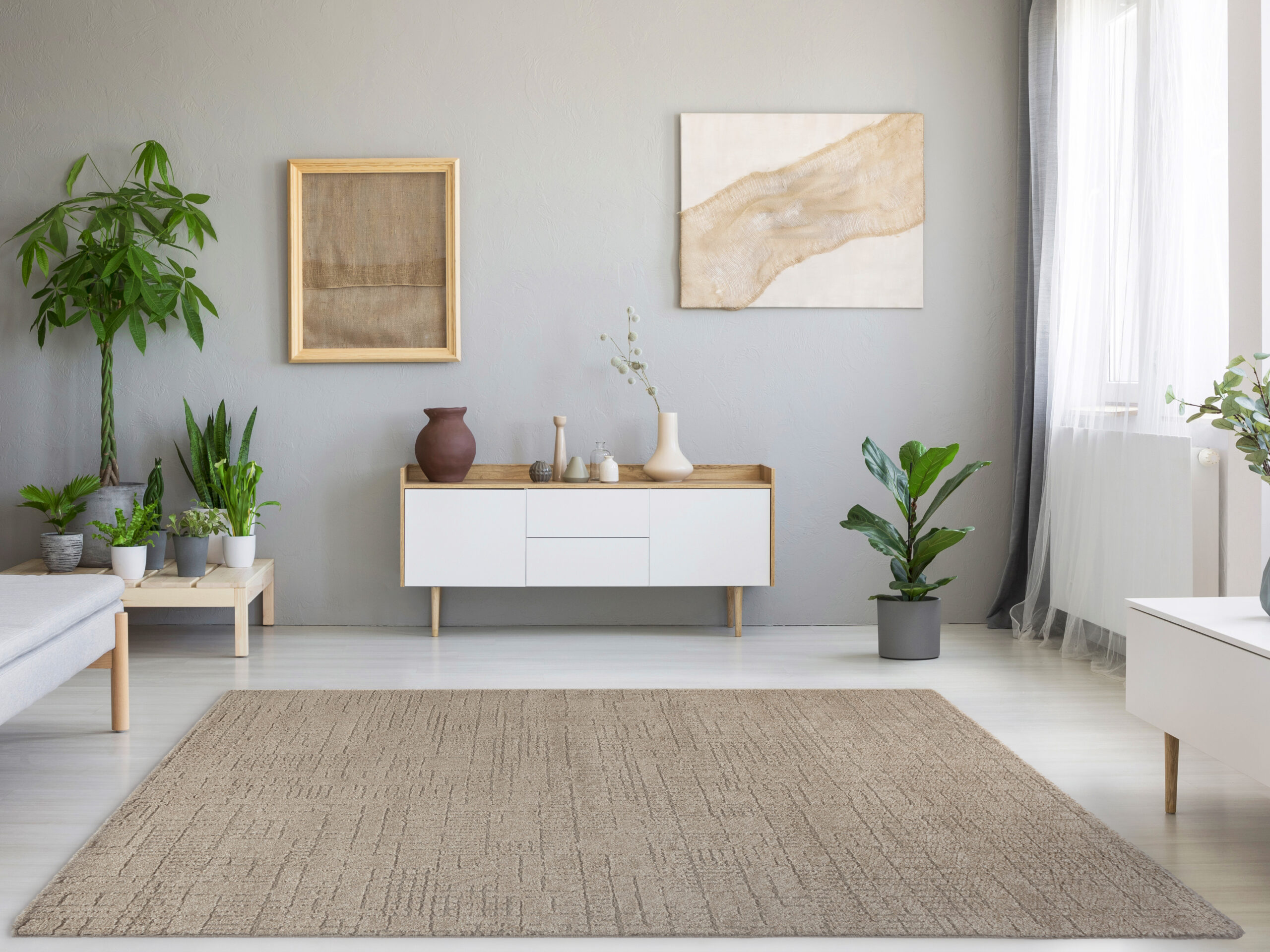 Tredito untermalt das Interieur durch seine subtile Optik sehr zurückhaltend. Seine dezenten Naturtöne machen diesen Teppich vielseitig kombinierbar. Besonders schön kommt er mit der Kombination von Holz- oder Weißtönen zur Geltung. Ebenso in hellen und naturnahen Wohnwelten.